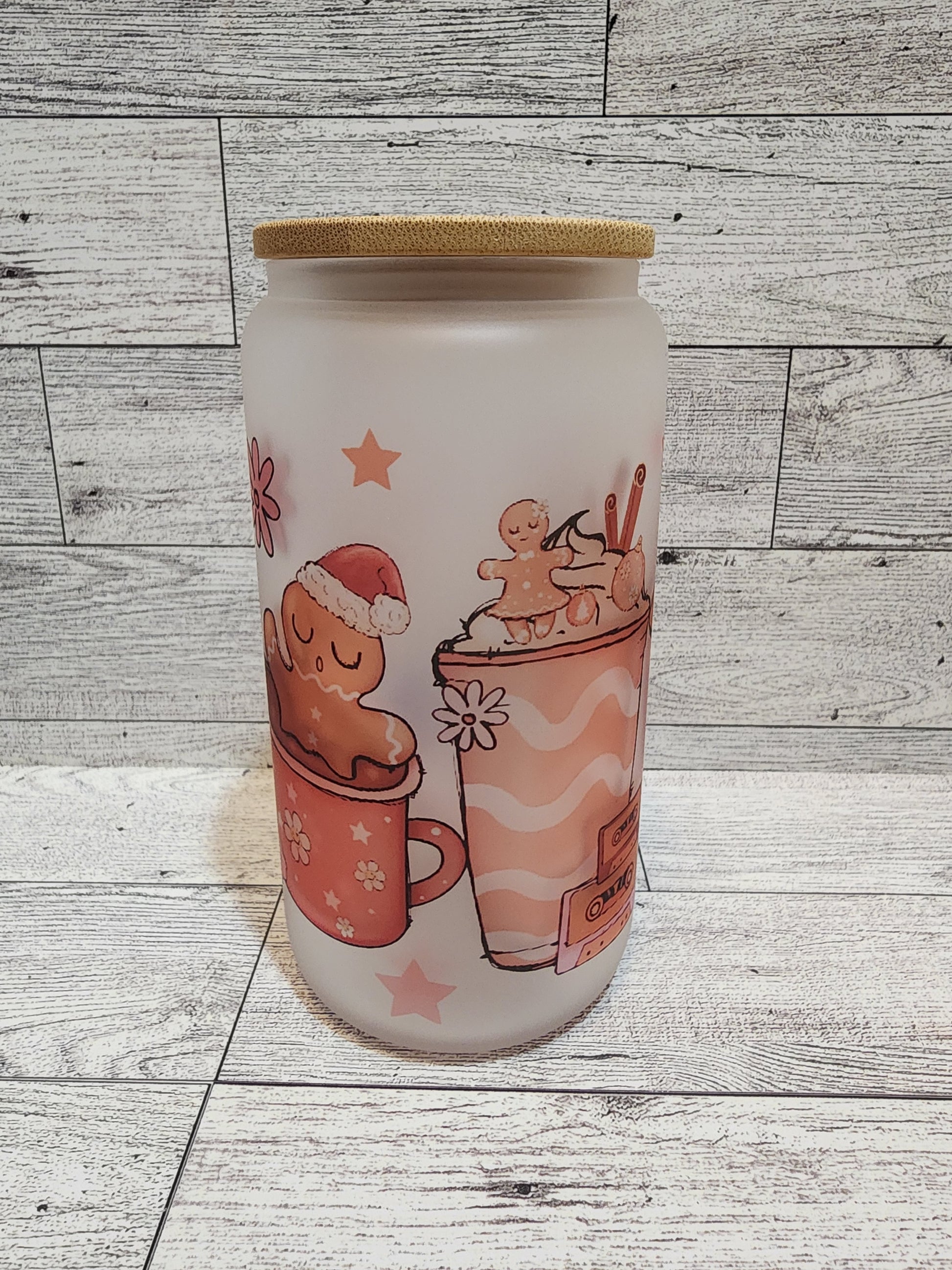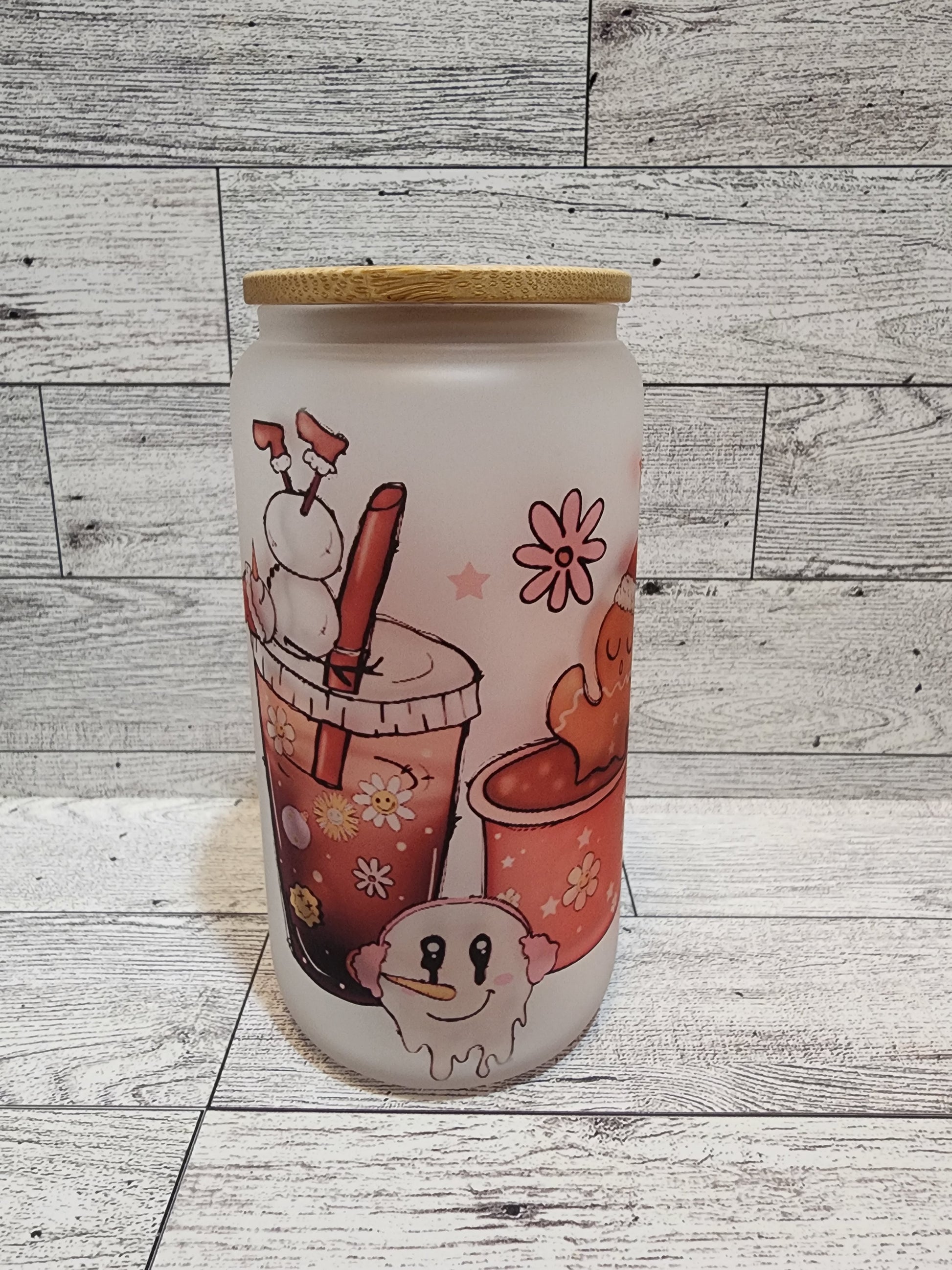 Retro Christmas Coffee 16oz frosted glass can. Comes with a bamboo lid and straw.