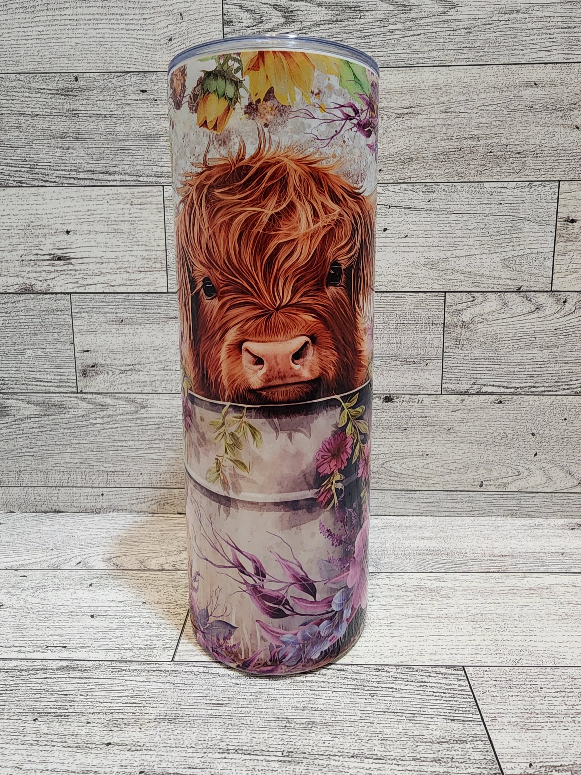 Highland Calf Springtime 20oz sublimation tumbler. Comes with a lid and straw.