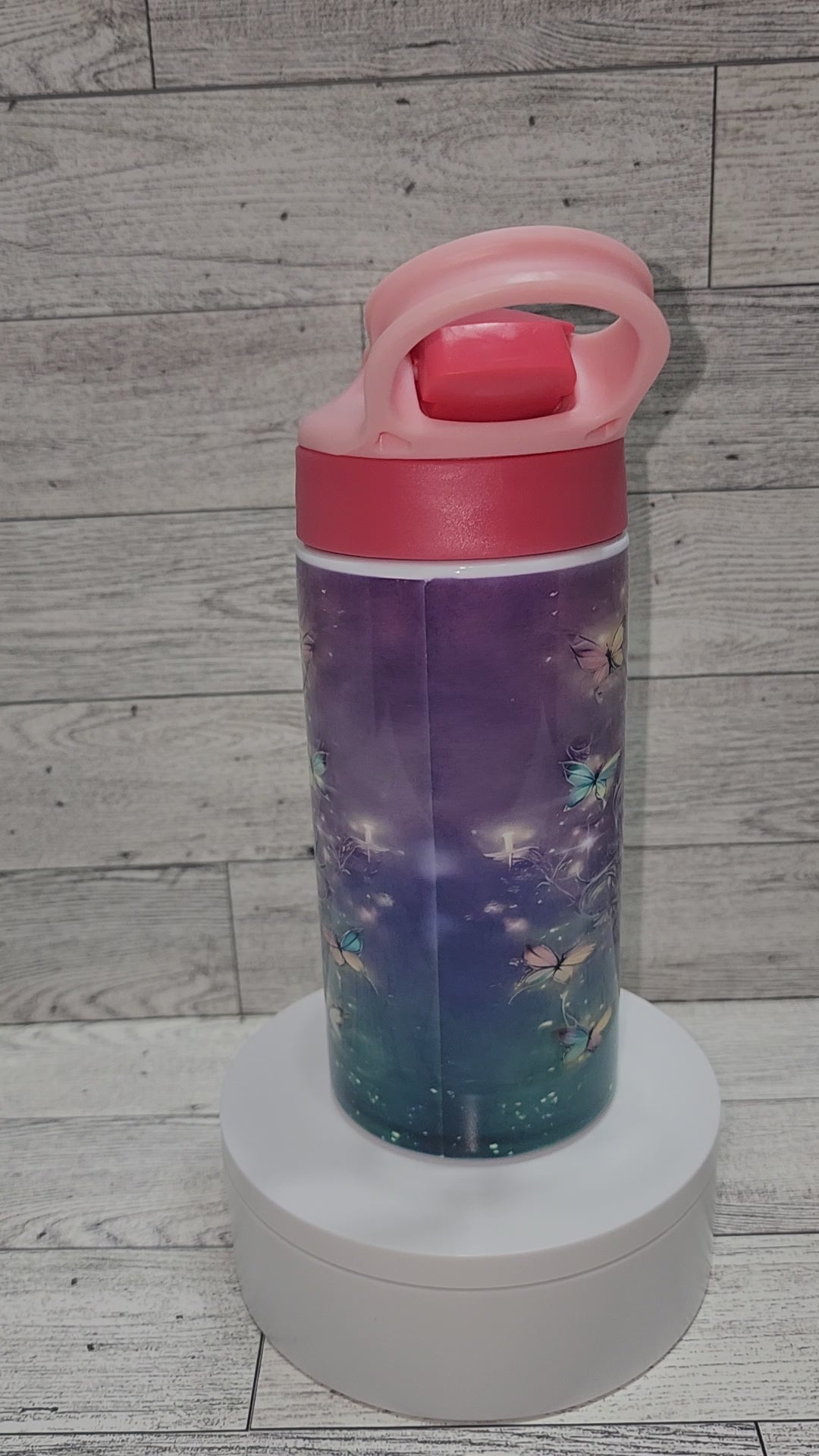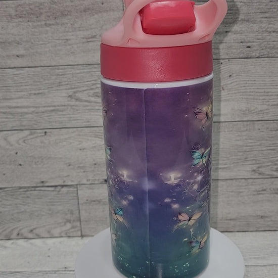 Tinkerbell inspired 12oz sublimation tumbler water bottle. Tumbler is double wall insulated stainless steel and comes with a lid and straw.